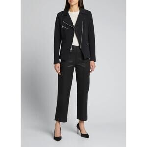 Veronica Beard Hadley Black Moto Blazer Jacket with Striped Varsity Dickey Size Small