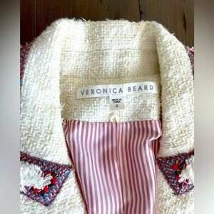 Veronica Beard Ivory Cream Cutaway Dickey Tweed Single Button Jacket Blazer