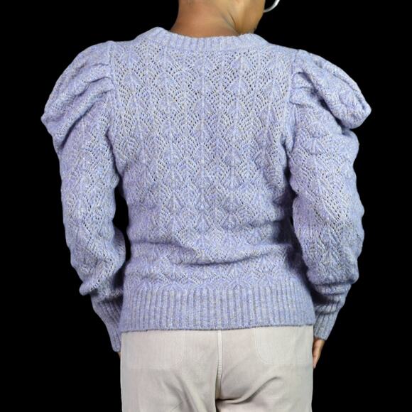 Veronica Beard Novah Pointelle Sweater Purple Pullover Puff Sleeve Alpaca Medium
