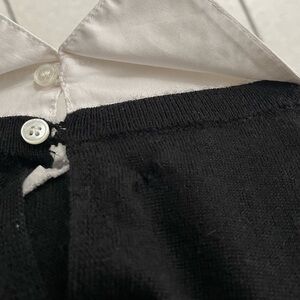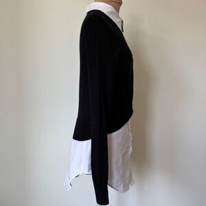 Veronica Beard Phoebe Black White Mixed Media Wool Button Up Sweater Top Size XS