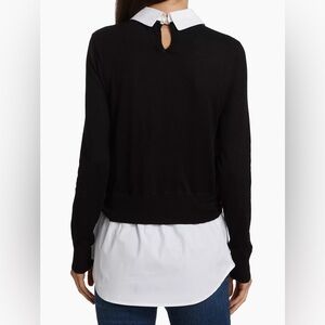 The Phoebe Mixed Media Sweater from Veronica Beard is a perfect combination of a merino wool knit top and a poplin collar and hem. A twist accent at the front gives you a figure-flattering look. Wear the piece with sleek trousers and and the Taran Mule.