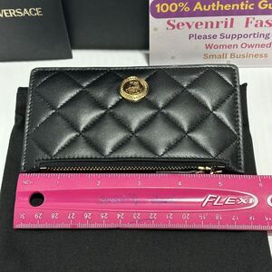 Versace Medusa Card Case Holder Wallet Black Quilted Leather Top Zip NIB