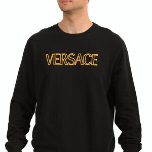 Versace Men's Black Logo Print Crewneck Sweatshirt US 2XL IT 56