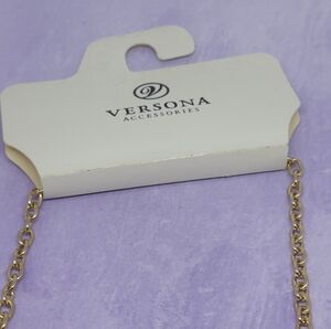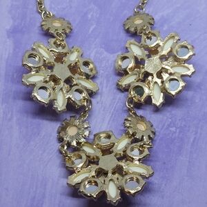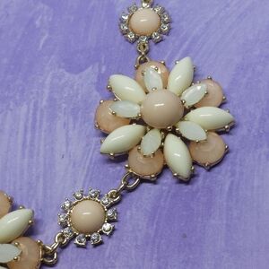 Versona Three Peach Cream Layered Flowers w/ Rhinestone Gold Tone Bib Necklace