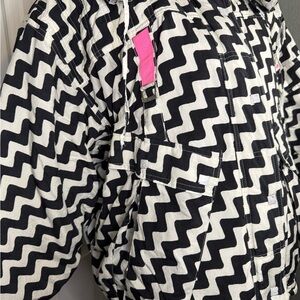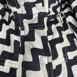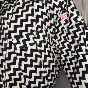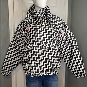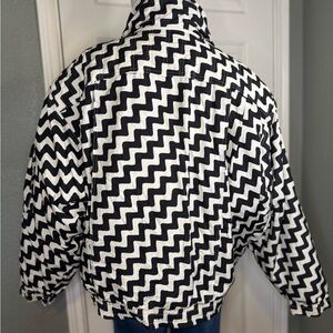 Very RARE Franz Klammer Vintage Puffer Jacket women’s Snow jacket zigzag black and white lines, the inside of the jacket very worn the outside in good condition.