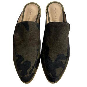 Very Volatile Green & Black Atwood Calf Hair Slip On Slide Loafer Mules Size 7