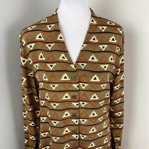 Via Seta Vintage Silk Southwest Button Down Long Sleeve Tunic Top Large