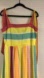 Vibrant maxi dress with multicolor stripes. Features a sleeveless design and flowing silhouette. Ideal for warm weather outings. Wore only once
