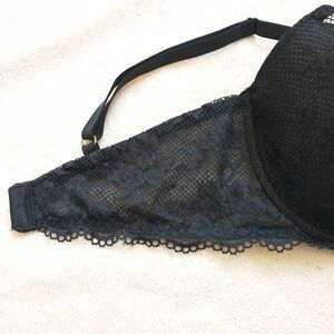 Victoria Secret Plunge Bra 36D Black Floral Lace Underwire Logo