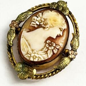 Victorian 19th Century Cameo Carved Shell Brooch & Pendant