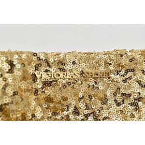 Victoria's Secret Black Gold Shiny Sequin Cosmetic Makeup Bag Pouch Small