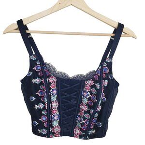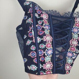 Victoria's Secret Dream Angels Corset Bra M DD Navy Blue Floral Victorian Sexy