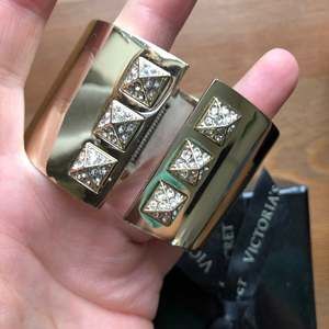 Clip on Cuff, golden bracelet with tiny pyramid shape details, rhinestone