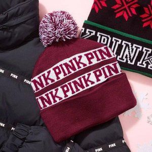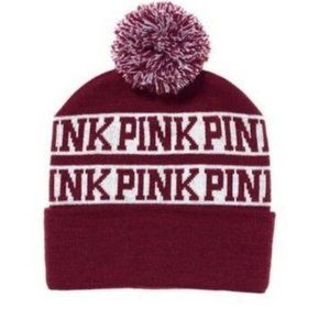 Victoria's Secret PINK | Maroon And Cream Pom Pom Beanie | Size Adult