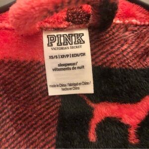 Victoria’s Secret Pink Plaid Dog Print Plush Fuzzy Robe Red Black XS/S. Faux Fur 100% polyester. Good preowned condition, missing belt