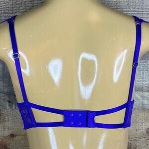 Victoria's Secret Very Sexy Lined Demi Lace Bra. Style# 350304. Size 34B. Color ~ Cobalt blue. High neck with a cut out. Adjustable straps. Lined cups. Excellent condition.