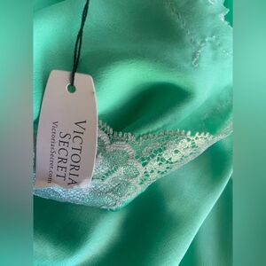 Victoria’s Secret Chemise Gown Green Satin Lace Lingerie Slip Sz Large NWT
