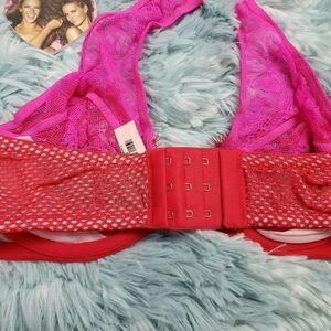 Victoria's Secrets Redย Hot Pink Fish Net Unlined Demi BraโSizeโ32โD