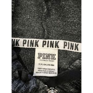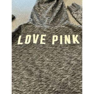 Gorgeous love pink embroidered print on the black 2 open sides on the hips, size Small oversized plenty room it may fit.