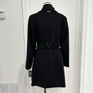 Vince Camuto Black Belted Layered Coat in size Large. New with tags. Never worn or used. No flaws. Double layer, great for extra warmth and wind protection. Can be zipped and bundled or wear the collar open for some air. Very versatile, soft, comfortable, warm, timeless and extremely stylish. Please refer to photos for exact size and details.