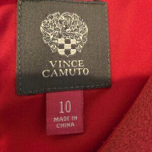 Vibrant and elegant, this Vince Camuto sleeveless dress in coral features a flattering A-line silhouette, hidden front pockets, and an exposed gold back zipper for modern flair. Fully lined with a touch of stretch for comfort and ease of movement.