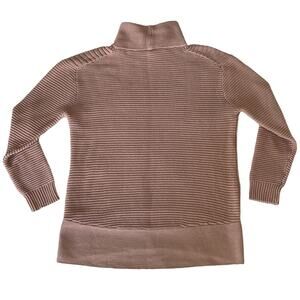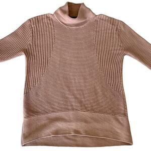 Oversized knit sweater size Medium in a dusty rose color by Vince Camuto. Cowl neck, lower in back for a flattering fit and covers backside. Very cozy warm and great with leggings and boots! Excellent preowned condition with no flaws of note.