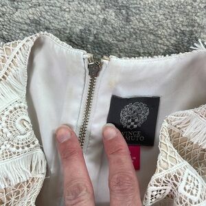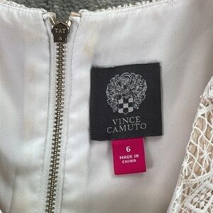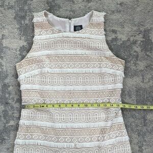 Vince Camuto Ivory Cream Lace Fringe Sheath Dress Sleeveless Career Sz 6