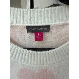 Vince Camuto Pink Heart Pearl Crewneck Sweater Size L
