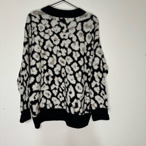 Vince Camuto Pullover Sweater Women's M Black Animal Print Leopard Long Sleeve