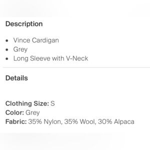 Vince Cardigan Sweater. Wool Blend. Pre-Owned.