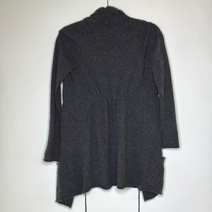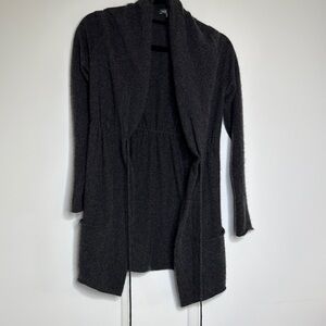 Elegant charcoal cardigan with open front. Ideal for layering.