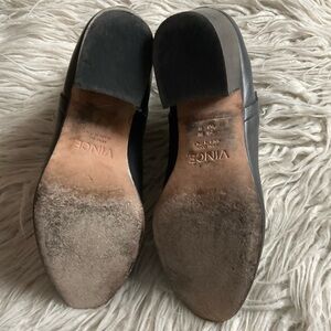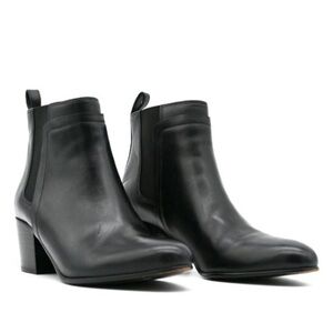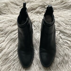 Vince Hallie Black Leather Block Heel Almond Toe Chelsea Ankle Boot EUC Size 8