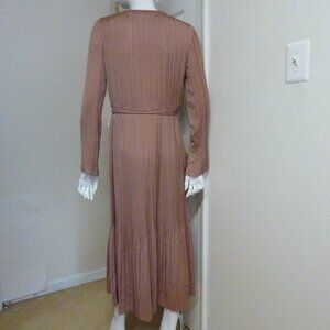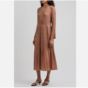 Vince Pleated Satin Long-Sleeve Midi Dress