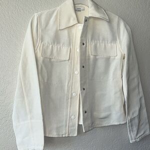 A warm weather layering piece, our textured shirt jacket is rendered in refined Italian cotton-blend ottoman and is designed to be worn as a perfectly oversized shirt or unbuttoned as a lightweight jacket.