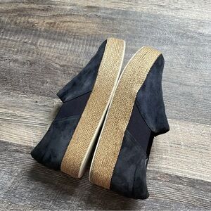 this espadrille sneaker features a streamlined profile with twin elastic gore detail to offer a secure fit while making it easy to put on and take off. The cushioned insole and rubber sole assure that you feel comfortable all through the day. 1.25" platform, 1.5" espadrille heel