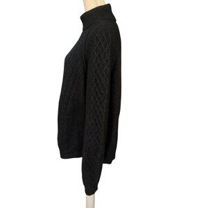 Vince Women's Yak and Wool Blend Turtleneck Cable Knit Sweater Black Size Large