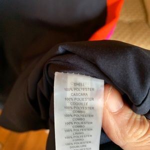 Lovely colors and very versatile. Navy, with pink snd orange at the swing part. Gold button closure