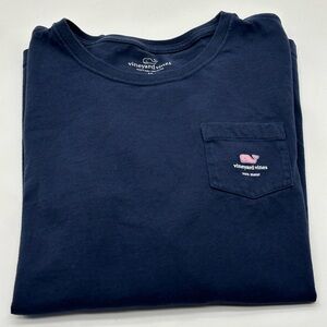 The product is a men's medium long sleeve t-shirt by the brand Vineyard Vines, purchased from Von Maur. The shirt is of regular size, in a blue color, and is designed specifically for men. It features the classic Vineyard Vines look and is a stylish addition to any man's wardrobe. Perfect for casual wear or layering, this t-shirt is a versatile and comfortable option for everyday wear. 7.65