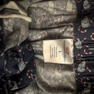 Vineyard vines blue w whalesd and crossed candy canes - L.  Drawstring waist with white ribbon tie.  2 side pockets.  Excellent condition with no rips stains or tears. Washed a few times and very soft
