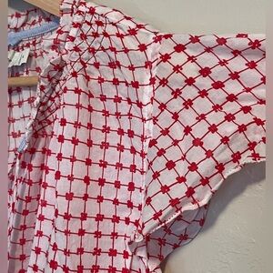 Vineyard Vines Red and White Patterned Cotton Blouse Flowy Checkered Lightweight