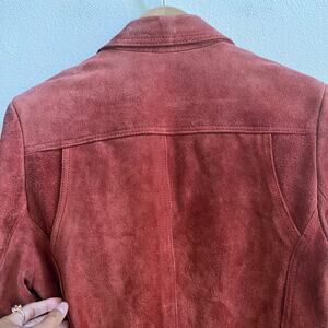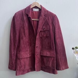 Vintage 100% Genuine Leather Suede Burgundy Red Women's Jacket Blazer Size 15/16