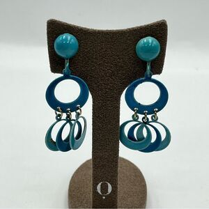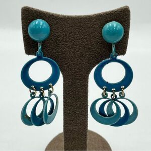 Vintage 1980s Blue Retro Dangle clip on metal Earrings