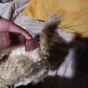 Adorable plush dog toy in cream and brown, perfect for small pets. Soft and cuddly, this toy is ideal for playtime and comfort.