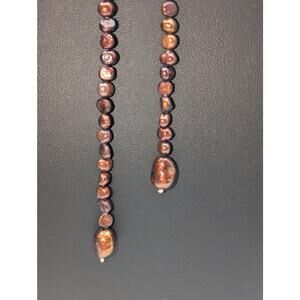 Vintage 52" Genuine Copper & Gold Lariat Style Open Ended Pearl Necklace. Gorgeous, and just in time for Fall when chocolate brown is the color of the season. So pretty. Versatile. Consider it a different type of scarf accessory. Pre-owned, this necklace is in excellent condition.