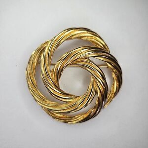 Vintage '60s Signed Monet Gold Tone Swirl Open Rope Ribbed Love Knot Brooch Pin
