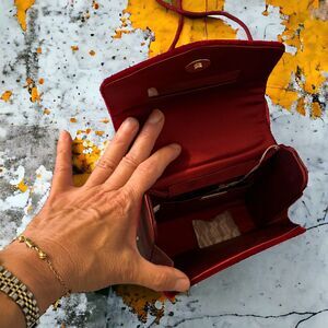 Infuse your evening look with vintage glamour. The rich burgundy color and plush velvet material give this bag an air of timeless sophistication. Whether you're attending a gala, a wedding, or a fancy dinner, this evening bag will complement your outfit to perfection and leave a lasting impression.