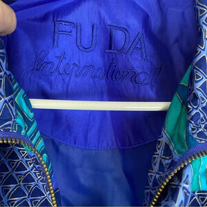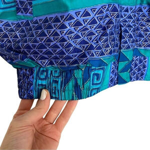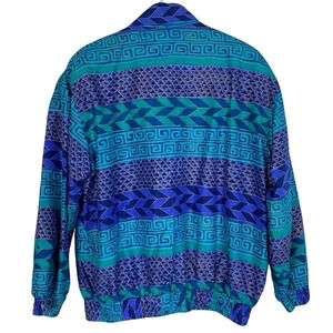 Vintage 80s 90s Silk Windbreaker Jacket Womens Medium Geometric Turquoise Blue