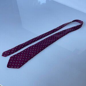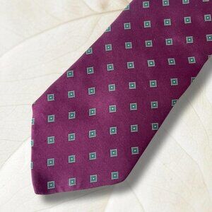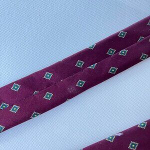 Description: vintage 80’s maroon tie with geometric print made with 100% Italian silk by Neil Martin.