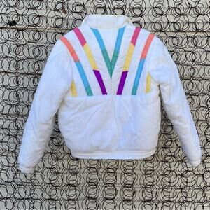 Vintage 80s Ocean Pacific white and pastel color block diagonal stripe ski coat jacket