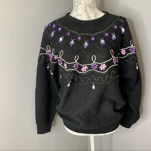 Vintage 80's WESTERN CONNECTION Black & Purple Gems beaded Sz Medium. Condition is "Pre-owned". Shipped with USPS Priority Mail.